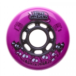 Street Invaders II - обновленная версия самых популярных колес для слалома и фрискейта. Используется новая формула полиуретана, благодаря чему колеса стали чуть быстрее, чуть цепче и чуть лучше. Полиуретан не содержит пустот и стирается равномерно. Профиль у колеса - тупой (round), для лучшего баланса. Ступица отличается особой крепостью и сломать ее сложно. Цена указана за одно колесо.