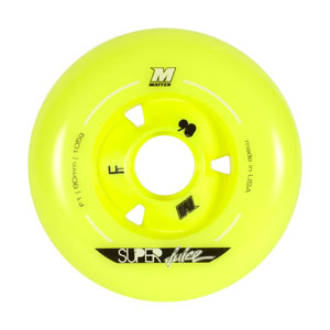 Колеса Super Juice обладают облегченной (полой ступицей) и по этой причине их не рекоменудется использовать в дисциплинах, связанных с ударной нагрузкой на колесо, так же не рекомендован роккеринг. Диаметр колёс 90 мм, жёсткость F1 (примерно соответствует 85А). В комплекте 4 колеса.