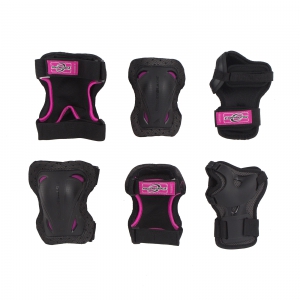 Самый простой и надежный комплект защиты для роллеров. Состоит из наколенников, налокотников и защитных перчаток. Наколенники и налокотники состоят из пластиковых "чашек", которые фиксируются на конечностях с помощью чулка и двух липучек. Защита кисти предполагает ограничение изгиба лучезапястного сустава и таким образом защищает его от вывиха и перелома при падении, надевается в виде перчатки и фиксируется липучкой. В отличии от классической защиты данная модель обладает более изящным внешним видом, но при этом так же выполняет свою прямую функцию. Рекомендуем Вам всегда использовать защиту при катании на роликовых коньках.