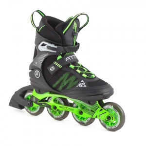 Профессиональные фитнес-ролики для мужчин K2 F.I.T. Pro 84 M в классическом черном цвете с яркими элементами салатового оттенка. Модель отличается расширенным размерным рядом, премиальной сборкой и предназначена для роллеров с опытом катания. Алюминиевая рама оснащена четырьмя мягкими колесами 80А большого диаметра (84 мм) с профессиональными подшипниками ILQ5. Мягкий, очень комфортный ботинок из дышащих материалов с сеточкой для вентиляции (отвода влаги) и укрепленным кафом из полипропилена для лучшей защиты голеностопа во время маневров. Быстрая шнуровка с пластиковым карабином, дополнительная фиксация на пяточный ремень-липучку и верхнюю клипсу. Идеальный вариант для длительного скоростного катания в городских условиях.