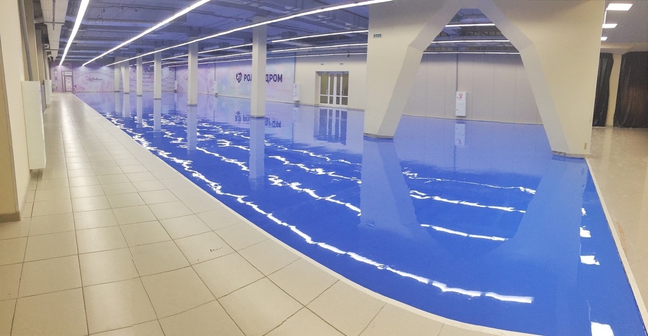 Тема роллердромов в России не особо развита. В сети толком невозможно ничего не найти. Поэтому насмотревшись видео с наливным полом, появилась идея сделать голубое бесшовное полотно из полимера.